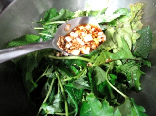 채소에 소스를 얹고 잘 섞어준 다음