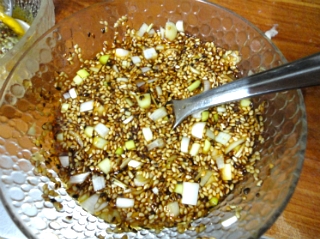 간장소스-간장 4T, 매실청1T, 다진마늘, 생강즙 각각 1t, 다진파, 깨 각각 1T