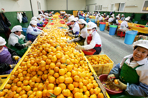 모든 공장이 자동화되고 있지만 유자공장만큼은 대부분 수작업에 의존한다.
